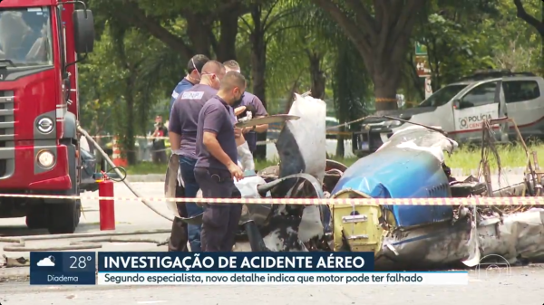 Segundo Leal, professor da Escola Politécnica da USP, a posição verificada das hélices do motor direito após o acidente (foto acima) pode indicar falha no motor. “Ele aparece com a hélice embandeirada, que é um procedimento que você usa quando você perde o motor e você deixa a hélice alinhada com o vento. Ela vira uma pá, gira e dá tração ao avião.”