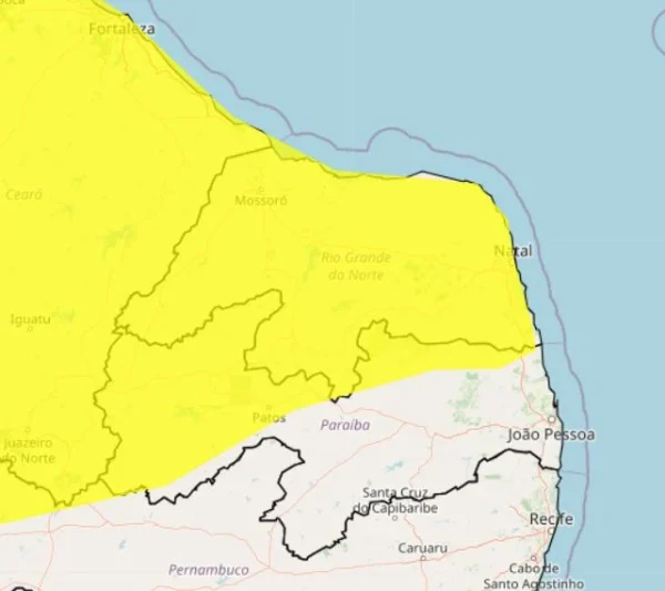 Todos os 167 municípios do Rio Grande do Norte estão sob aviso de chuvas intensas nesta terça-feira (21). O alerta, publicado pelo Instituto Nacional de Meteorologia (Inmet), tem vigência até às 10h da manhã desta quarta-feira (22). Durante o período, há possibilidade de chuva entre 20 e 30 mm por hora ou até 50 mm por dia, além de ventos intensos (40-60 km/h).