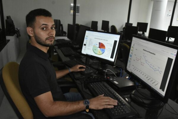 ‘Conhecimento’ é, também, a palavra chave na experiência profissional do estudante Sávio Allan da Silva Moura. Aos 25 anos, ele cursa o 9º período de Ciência da computação na Universidade Federal Rural do Semi-Árido (UFERSA) e há quase dois anos alia os estudos com o estágio em Tecnologia e Informação alcançado por meio do IEL/RN na unidade da Petrorecôncavo em Mossoró.