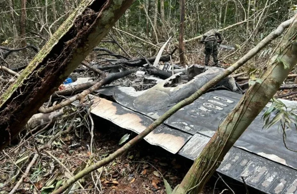 O avião acabou colidindo com o solo, no meio da selva, e pegou fogo. Por isso, até agora ainda não foi possível identificar o modelo da aeronave.