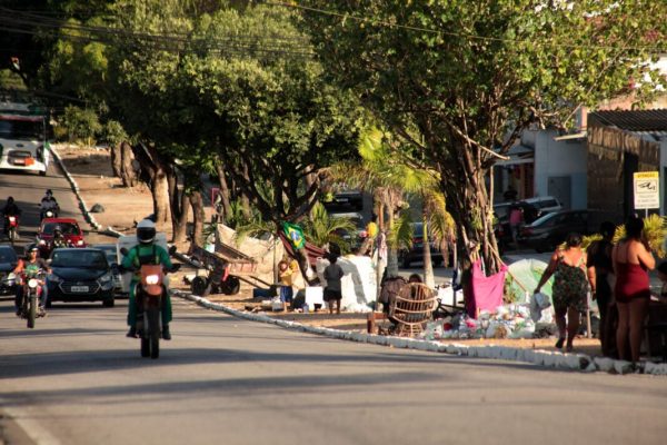 A TRIBUNA DO NORTE esteve no local nesta quarta-feira (18) e pôde observar pelo menos 40 barracos e tendas ao longo de toda a Avenida das Alagoas, que historicamente costuma abrigar famílias em situação de vulnerabilidade social nesta época do ano. São mais de 100 pessoas, entre mães, pais, crianças e idosos, passando o dia em busca de doações e dormindo nos espaços.