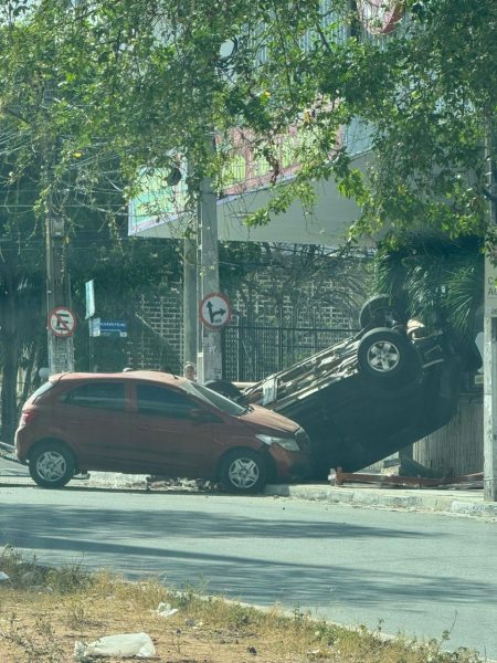 Nesse momento, o condutor derrubou uma placa de um posto de combustíveis, entrou na Avenida Antônio Basílio, atravessou o canteiro central e só parou na calçada de um supermercado após capotar. No acidente, ele atingiu duas motos e um outro carro.