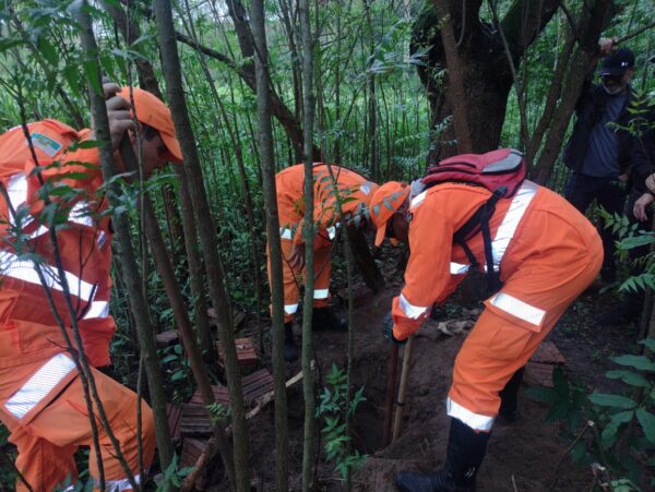 O Corpo de Bombeiros foi acionado com a equipe de cães farejadores para ajudar nas buscas dentro da área de 13 hectares. “Os bombeiros localizaram ossos pequenos e em seguida a ossada com uma parte do crânio. Então a partir de agora estamos aguardando a equipe de antropologia forense do Itep para continuar com as buscas”, explicou o delegado.