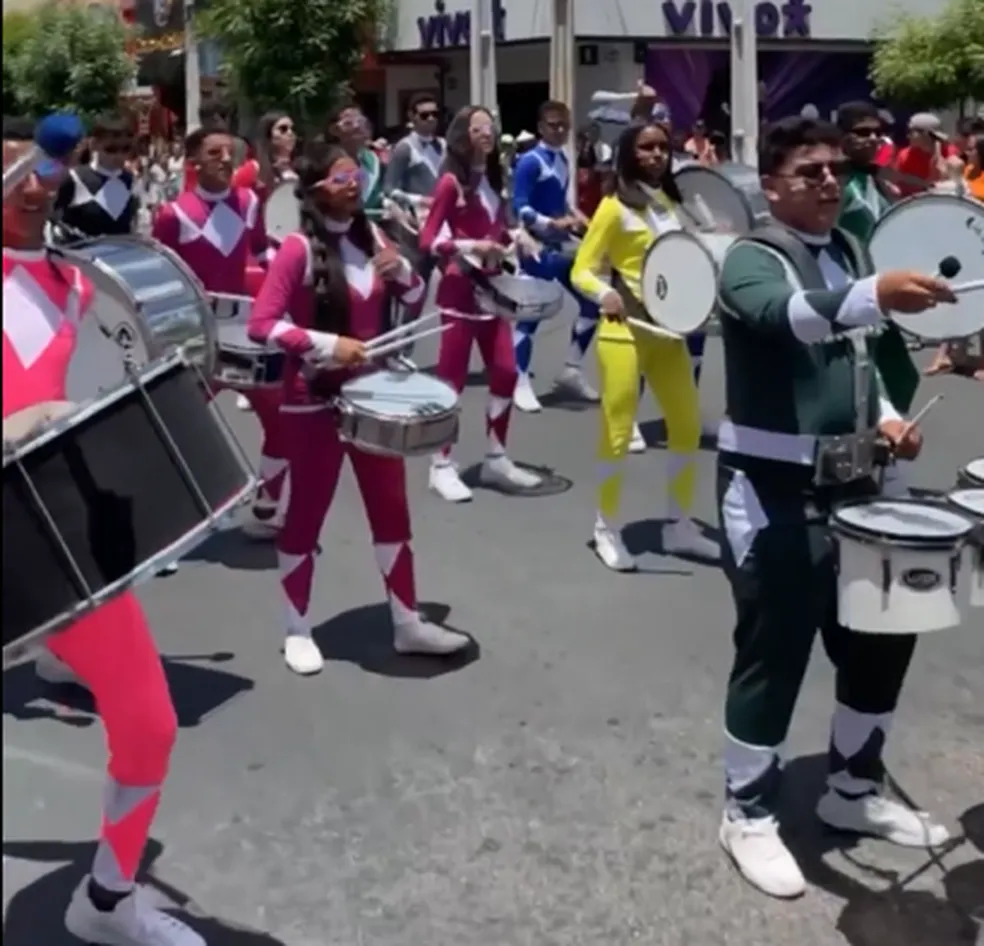 Durante a semana da pátria, na segunda-feira (4), a Fanfarra já havia se apresentado também vestidos de Power Ranger em outro evento na cidade.