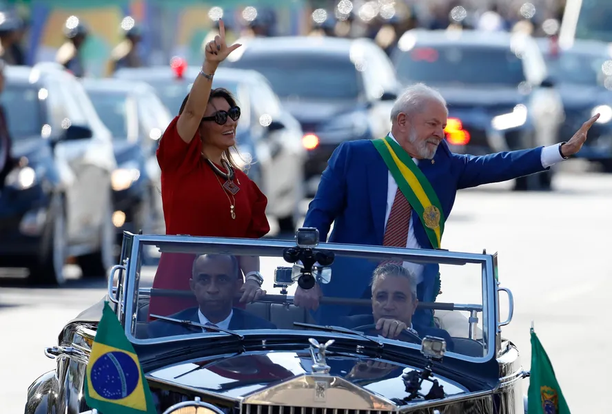 Janja fez o L enquanto desfilava, de vestido vermelho, em carro aberto ao lado do presidente Lula. Naturalmente que a primeira-dama pode se vestir da forma que quiser — só não deve imaginar que usar vermelho durante o desfile militar de 7 de Setembro em Brasília pegaria bem. Não por acaso, Lula desfila com a faixa presidencial verde e amarela no peito.