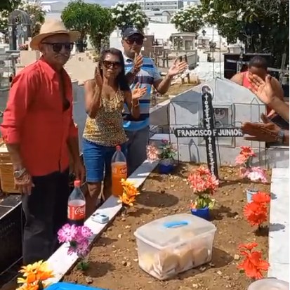 O agricultor José Ramildo Junior, decidiu reunir os amigos e familiares para celebrar a chegada da nova idade de uma forma diferente. O idoso conhecido como “Bibi do Barraco” levou bolo e refrigerante para comemorar os 77 anos, no último domingo (27), no Cemitério Padre Manoel Gadelha, em Santa Cruz, no interior do RN.