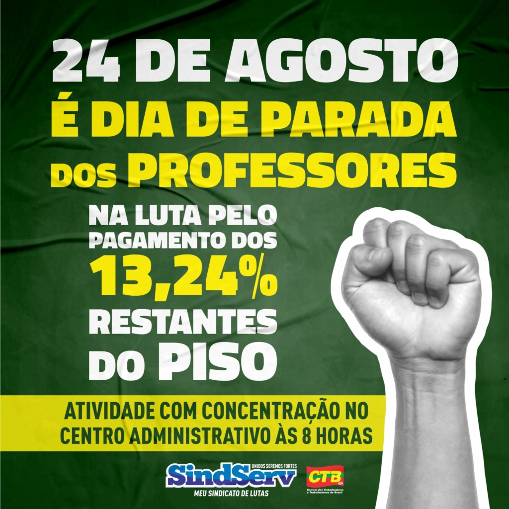A atividade foi deliberada durante a última assembleia da categoria convocada pelo SINDSERV e faz parte da agenda de lutas dos educadores que buscam o pagamento dos 13,24% restantes do Piso Salarial Nacional do Magistério, além da quitação dos valores retroativos.