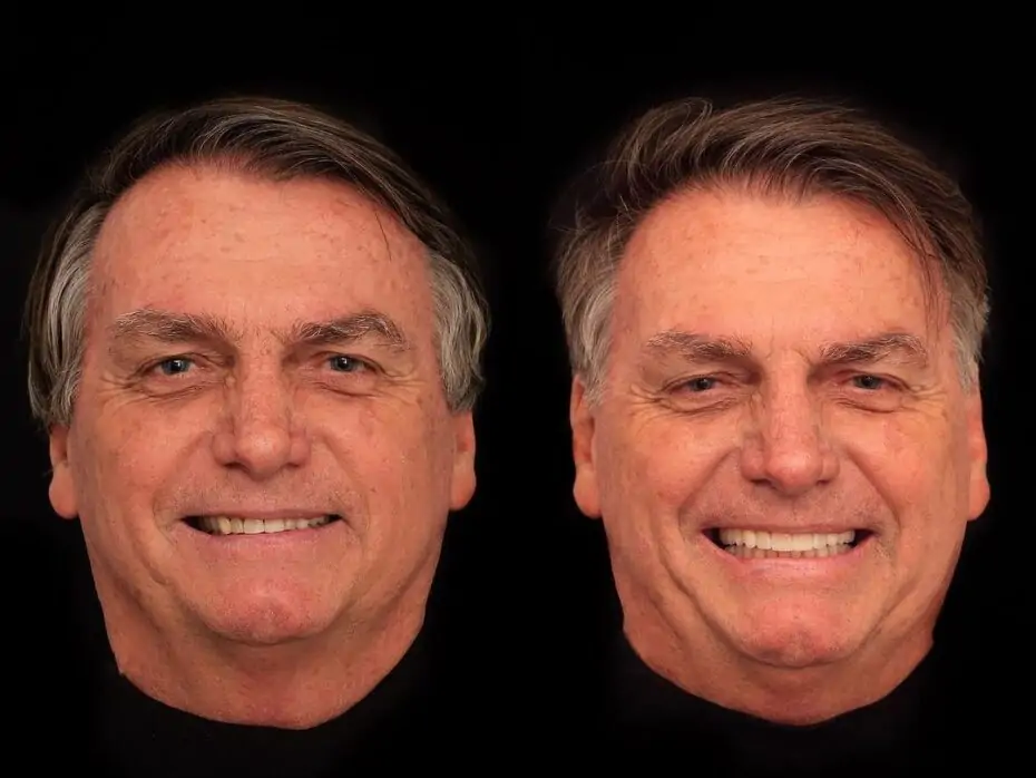 O ex-presidente Jair Bolsonaro (PL) fez uma harmonização do sorriso. O procedimento foi realizado pelo dentista Rildo Lasmar, que atende em Goiânia (GO), onde Bolsonaro esteve na última sexta-feira (18). O resultado, com imagens do antes e depois, foi publicado pelo dentista nas redes sociais.