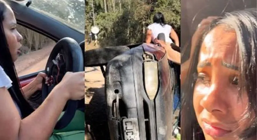 Uma mulher fez o carro capotar enquanto o marido a ensinava a dirigir, em uma estrada rural. No vídeo publicado por ela, é possível ouvir o marido dizer: “solta a embreagem devagar”. A mulher, Ingrid Dias, parece estar nervosa, move o volante com força e, na sequência, o carro capota.