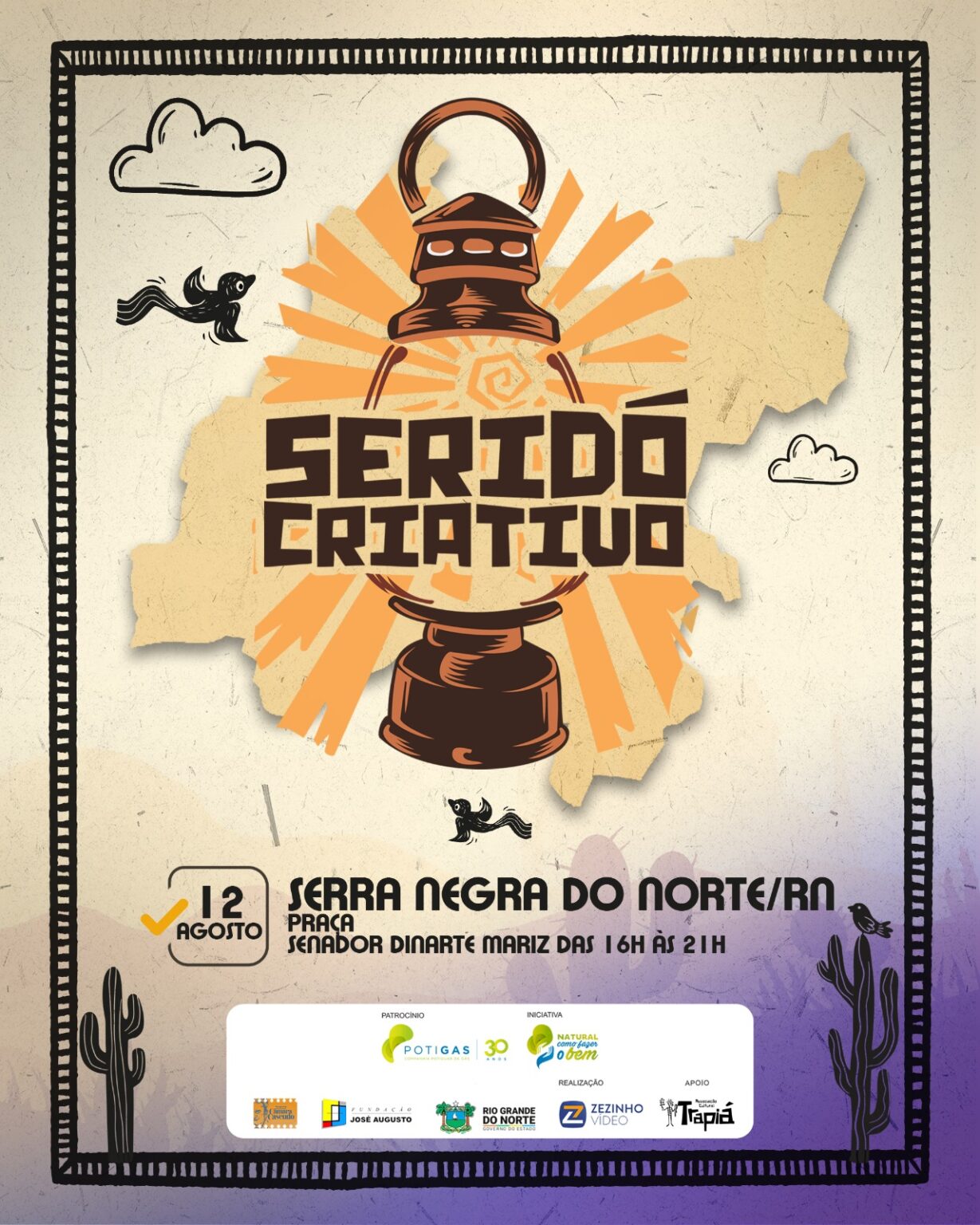 No próximo final de semana, o Projeto Seridó Criativo que visita sete cidades da região com música, teatro, oficina de dança e Feira de Artesanato, vai visitar as cidades de Serra Negra do Norte e Timbaúba dos Batistas, das 16h às 21h em praça pública. Em Serra Negra será sábado, na Praça Dinarte Mariz, e em Timbaúba dos Batistas será no domingo, na Praça Chilon Batista.