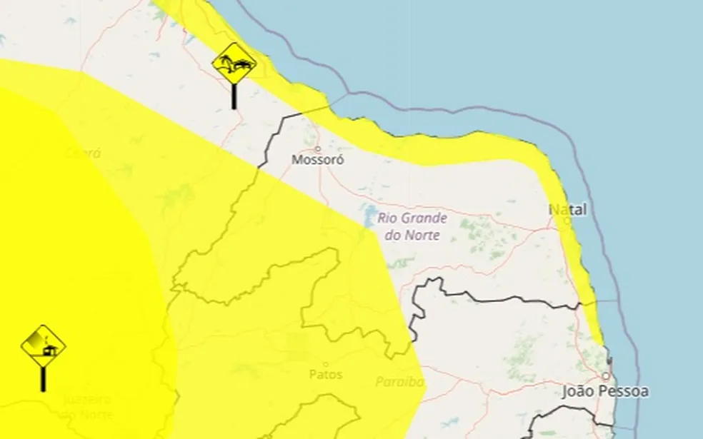 O Instituto Nacional de Meteorologia (Inmet) emitiu dois alertas para o Rio Grande do Norte: um de vendaval e um de ventos costeiros intensos (veja mais abaixo as cidades em cada alerta).