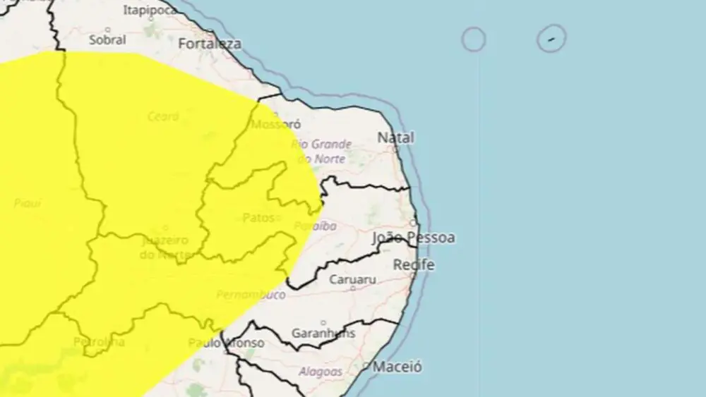 O Instituto Nacional de Meteorologia (Inmet) emitiu dois alertas de baixa umidade para 72 cidades do Rio Grande do Norte.
