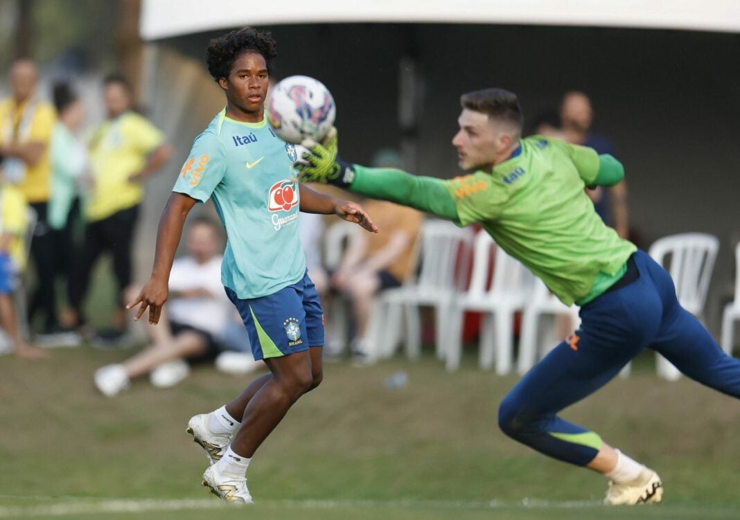 O técnico Dorival Júnior deve fazer uma mudança no ataque da seleção. No último treino de preparação para o jogo contra o Paraguai, o treinador escalou Endrick entre os titulares, no lugar de Luiz Henrique. Endrick foi a única novidade entre os 11 titulares no treino realizado no CT do Caju, casa do Athletico-PR, em Curitiba (PR). Com esta alteração, Rodrygo passou a treinar pelo lado direito do ataque. Ele jogou mais centralizado na vitória sobre o Equador, por 1 a 0, na sexta-feira, na capital paranaense.