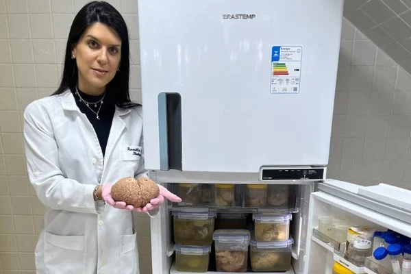 Pós-doutoranda na Universidade Federal do Rio de Janeiro (UFRJ) e apoiada pelo Instituto Serrapilheira, ela está reunindo a maior coleção de cérebros de cetáceos da América Latina. Hoje, já são 55 encéfalos de golfinhos armazenados em uma geladeira na universidade e disponíveis para estudos em neuroanatomia comparada, ramo da ciência que foca em compreender similaridades anatômicas entre espécies.
