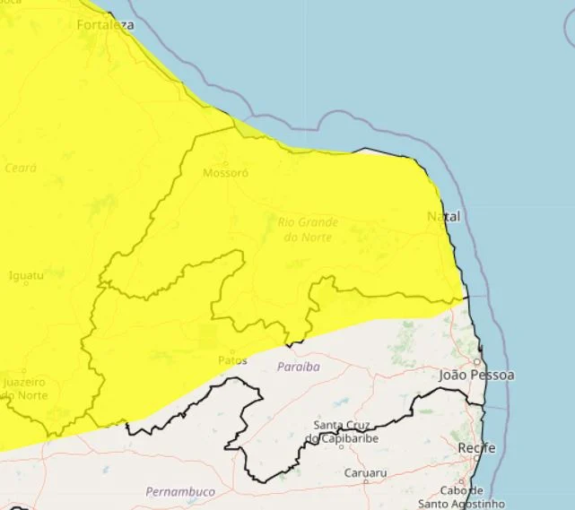 Todos os 167 municípios do Rio Grande do Norte estão sob aviso de chuvas intensas nesta terça-feira (21). O alerta, publicado pelo Instituto Nacional de Meteorologia (Inmet), tem vigência até às 10h da manhã desta quarta-feira (22). Durante o período, há possibilidade de chuva entre 20 e 30 mm por hora ou até 50 mm por dia, além de ventos intensos (40-60 km/h).
