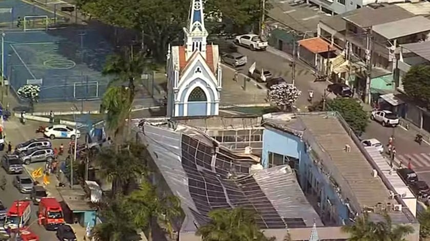 O telhado do Santuário do Morro da Conceição, na zona norte do Recife, desabou nesta sexta-feira (30), por volta das 13h30, durante uma distribuição de cestas básicas. Equipes do Corpo de Bombeiros, do Serviço de Atendimento Móvel de Urgência (Samu 192), da Polícia Militar (PM) e da Defesa Civil estão no local, atuando nas ações emergenciais.