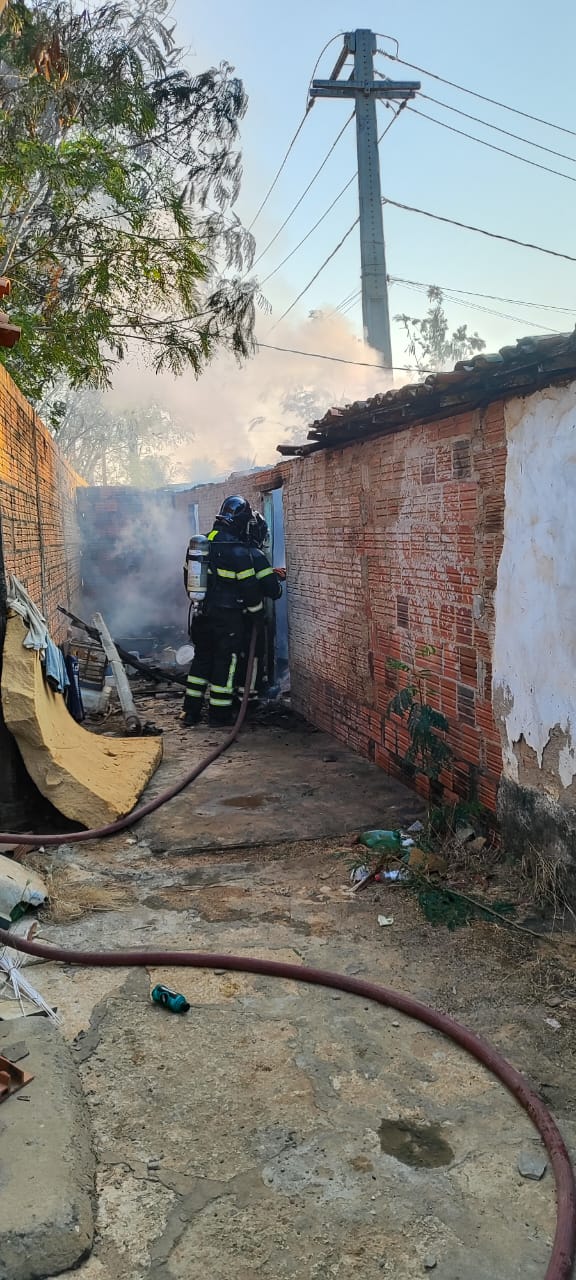 O fogo destruiu grande parte do imóvel, dificultando a atuação inicial dos Bombeiros, que trabalharam intensamente para controlar as chamas e impedir que o incêndio se alastrasse para residências vizinhas.