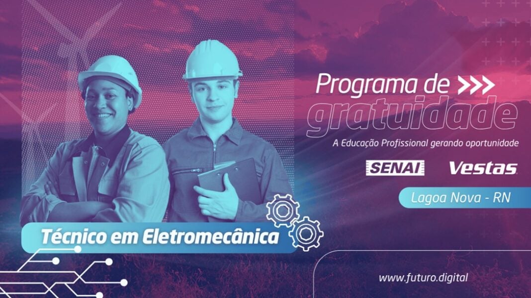 Nos próximos dias 27 e 28 de agosto, a equipe do SENAI do Rio Grande do Norte estará no município de Lagoa Nova para receber inscrições para um novo programa de educação profissional, com vagas gratuitas e incentivo à participação de mulheres. As inscrições e também as entrevistas seletivas serão realizadas presencialmente, das 8h às 19h, no Centro Pastoral (localizado na AvenidaSilvio Bezerra de Mello, com entrada por trás da igreja católica, em frente à sede da Prefeitura). O curso oferecido será o Técnico em Eletromecânica.