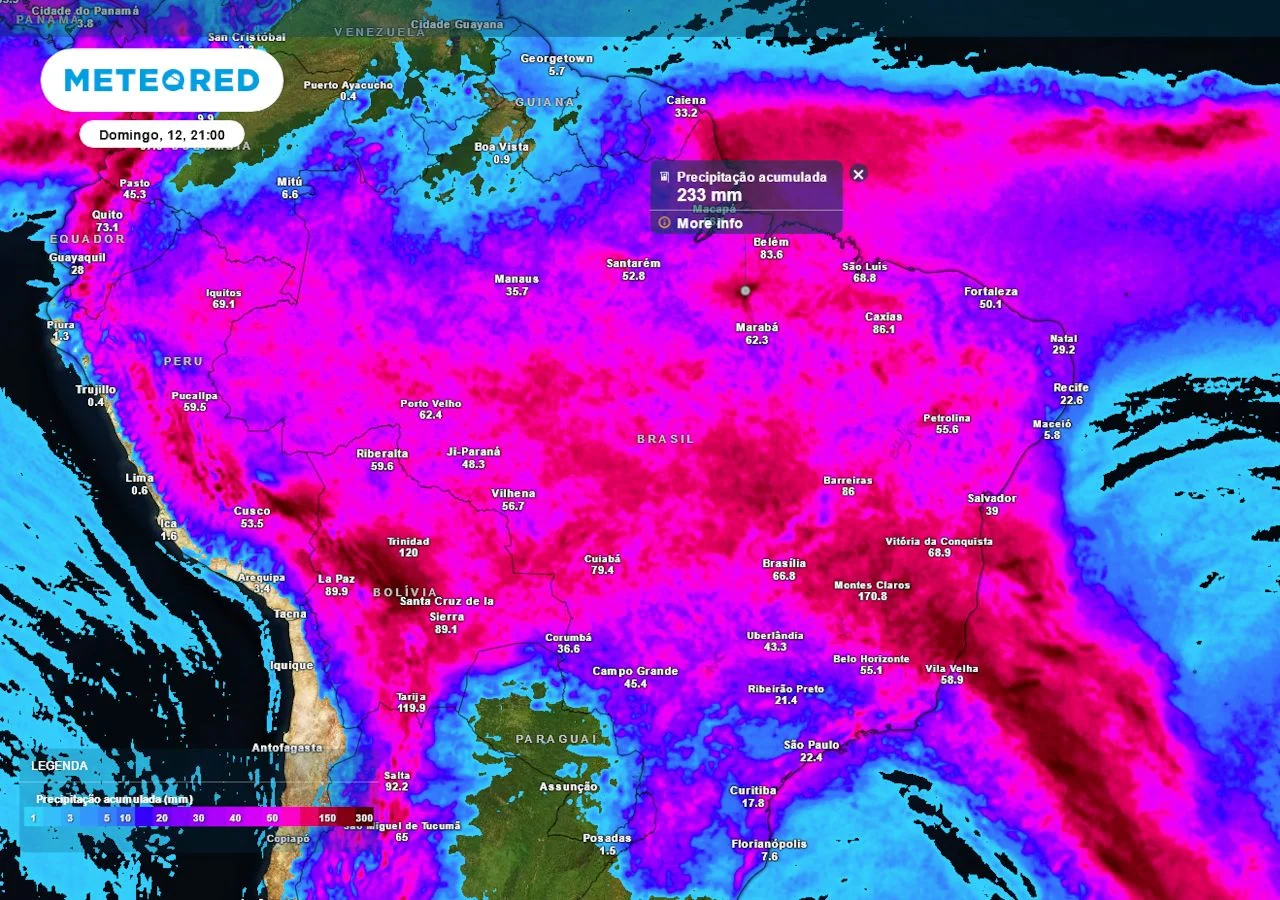 Na Região Norte, é esperado que Rondônia, parte do Pará e Tocantins registrem chuvas frequentes e localmente volumosas. No Amapá, em particular, as chuvas serão abundantes no leste devido à influência da Zona de Convergência Intertropical (ZCIT). Essa condição também leva a volumes excessivamente altos de precipitação na Ilha de Marajó, destacando a importância de monitorar possíveis enchentes e deslizamentos de terra.