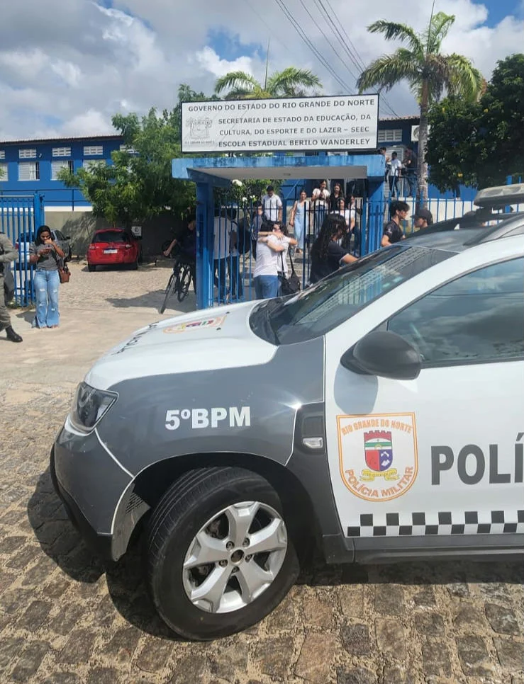 Na manhã desta terça-feira (16), a Polícia Militar do Rio Grande do Norte agiu com rapidez e eficiência ao impedir uma tragédia maior na Escola Estadual Berilo Wanderley, na Zona Sul de Natal. Uma adolescente entrou na unidade escolar armada com um revólver calibre .38, com a intenção de atentar contra colegas e tirar a própria vida.
