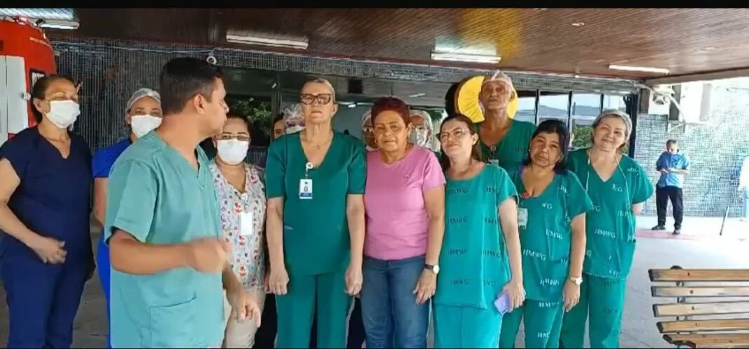 Profissionais reivindicam pagamento dos salários de setembro – Foto: reprodução/Sindsaúde