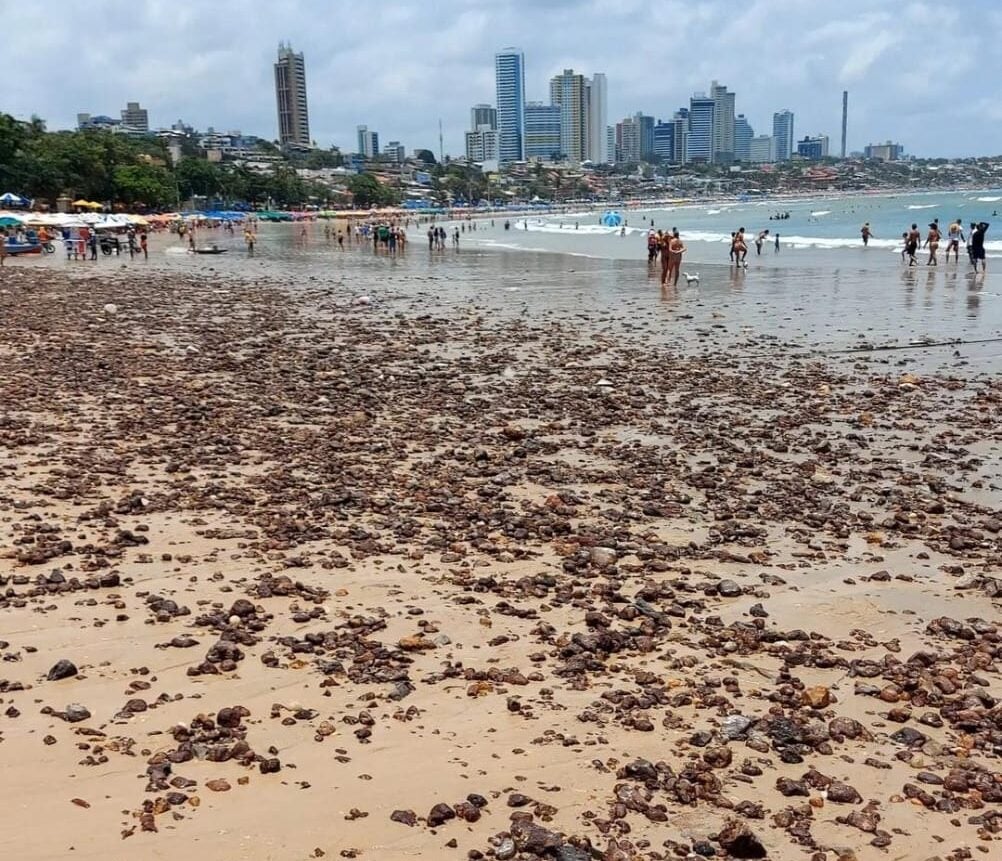 O aparecimento de várias pedras em alguns trechos da Praia de Ponta Negra surpreendeu banhistas e visitantes do ponto turístico nesta semana. Uma imagem publicada nas redes sociais mostra um dos pontos repletos de sedimentos, os quais apresentam uma cor mais escura que a areia. Apesar da surpresa entre a população, o fênomeno é causado por fatores comuns. De acordo com geólogo e professor da Universidade Federal do Rio Grande do Norte, Ricardo Farias, o surgimento das pedras, chamadas tecnicamente de rochas pelos especialistas, é causado pelo movimento da maré e também pela intensidade do vento.
