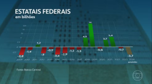 São mais de 100 empresas estatais. Fazem parte da máquina do governo federal e atuam em diversos setores – como infraestrutura, telecomunicações e agropecuária. O governo usa o resultado de algumas dessas empresas para calcular o desempenho das contas públicas do país – mês a mês. E, em 2024, as contas devem apresentar o maior rombo desde 2009.