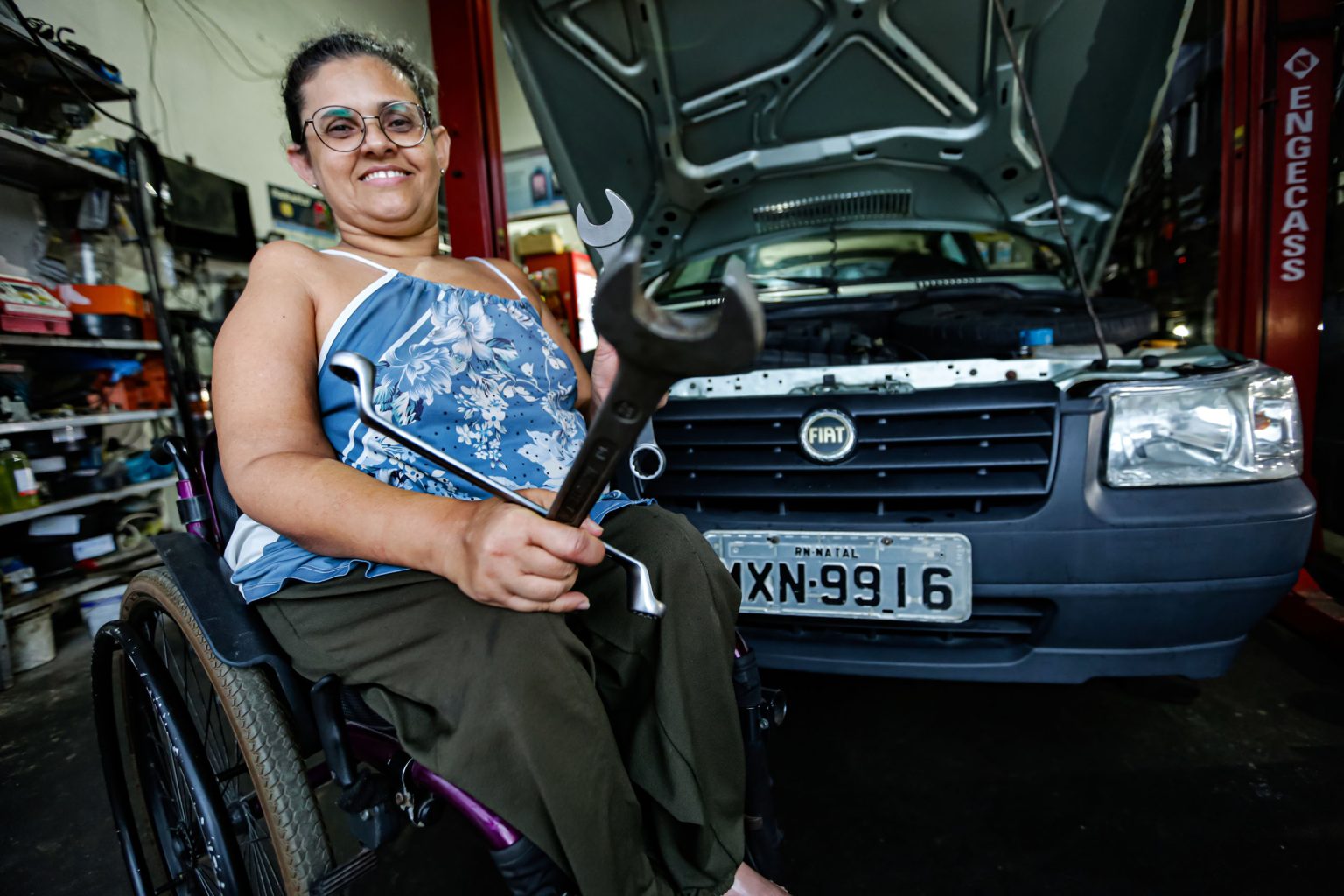 Natural da capital Natal, 49 anos de idade e moradora do bairro de Pajuçara, na zona Norte há 20 anos, Sandra é sequelada de poliomielite desde um ano de vida, doença causada pelo polivírus. “Eu andava quando tive o vírus e a partir de então fiquei com paralisia dos membros inferiores e um membro superior, o braço direito”, explicou Sandra Sousa, o que a faz se locomover com o uso de uma cadeira de rodas.