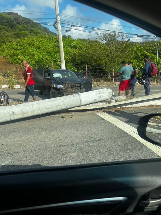 Um carro colidiu com um poste na avenida Via Costeira, em Natal, próximo ao Hotel Pirâmide, na manhã desta quarta-feira (16). O veículo estava na via sentido Ponta Negra, quando se chocou e derrubou o poste na outra via, sentido zona Leste.