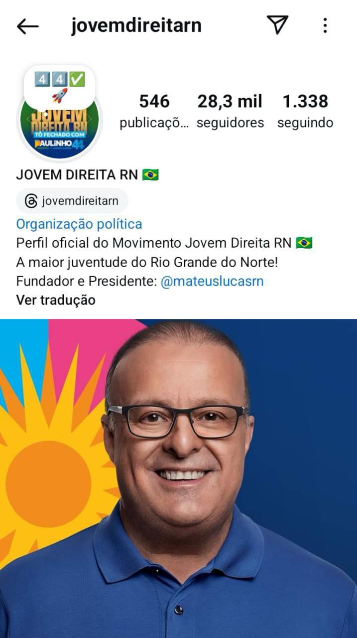A maior página da Direita que é dedicada a juventude declarou apoio ao candidato Paulinho Freire 44 na disputa pela Prefeitura de Natal.