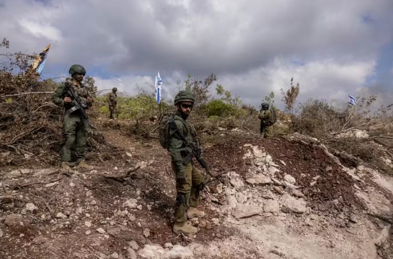 Soldados israelenses fazem invasão controlada na região de Naqoura, no sul do Líbano, perto da fronteira com Israel — Foto: Menahem KAHANA / AFP