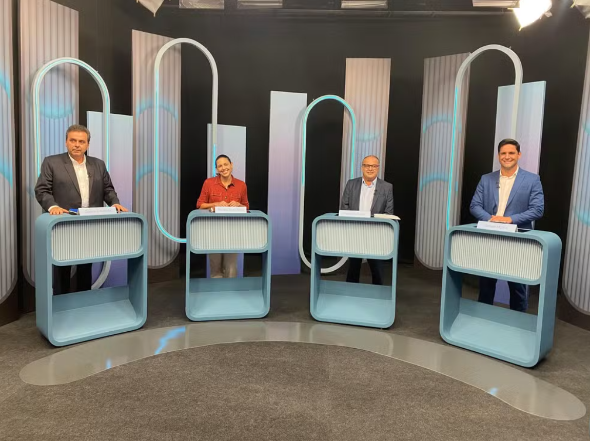 Os candidatos à Prefeitura de de Natal Carlos Eduardo (PSD), Natália Bonavides (PT), Paulinho Freire (União) e Rafael Motta (Avante) participaram do debate promovido pela Inter TV Cabugi nesta quinta-feira (3). O encontro foi mediado pela jornalista Emmily Virgílio.
