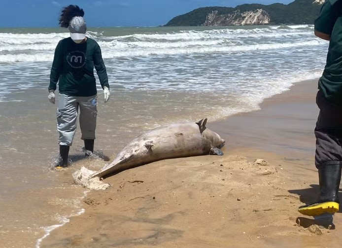 Um golfinho foi encontrado morto nesta segunda-feira (30) na praia de Ponta Negra, na Zona Sul de Natal. Segundo banhistas e pessoas que trabalham na praia, o corpo do animal encalhou na orla no final da manhã.