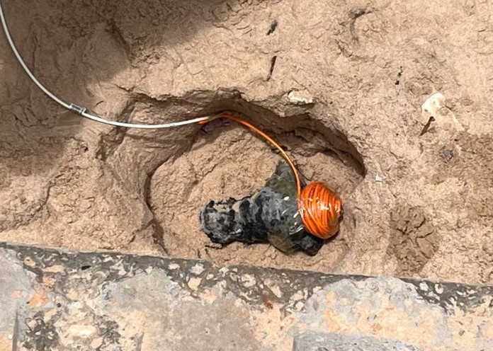 O explosivo foi visto por uma pessoa com detector de metais que passava pelo trecho a procura de moedas e jóias. Ele alertou sobre o fato aos vendedores da região e à polícia.