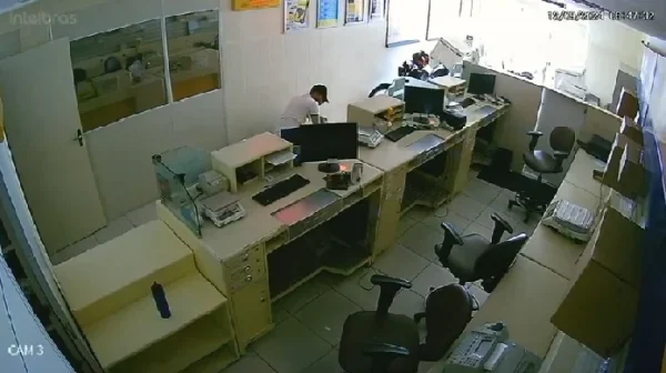 O roubo foi capturado pelas câmeras de segurança da agência. Nas imagens, os suspeitos chegam ao local por volta das 6h50. Um dos criminosos, armado e vestindo o que parecia ser uma farda, rendeu um funcionário no momento em que ele abria o estabelecimento. O segundo suspeito entrou em seguida, após o primeiro ter controlado a situação.