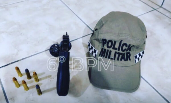 Ao se aproximar, os mesmos conseguiram empreender fuga, deixando para trás um revólver calibre 38 e 06 (seis) munições intactas.