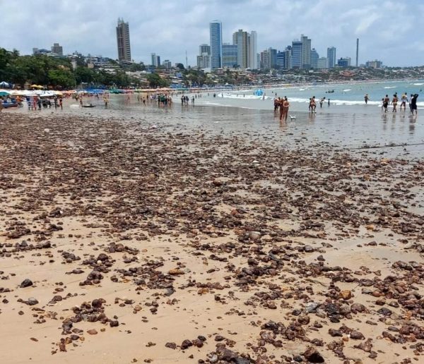 O aparecimento de várias pedras em alguns trechos da Praia de Ponta Negra surpreendeu banhistas e visitantes do ponto turístico nesta semana. Uma imagem publicada nas redes sociais mostra um dos pontos repletos de sedimentos, os quais apresentam uma cor mais escura que a areia. Apesar da surpresa entre a população, o fênomeno é causado por fatores comuns. De acordo com geólogo e professor da Universidade Federal do Rio Grande do Norte, Ricardo Farias, o surgimento das pedras, chamadas tecnicamente de rochas pelos especialistas, é causado pelo movimento da maré e também pela intensidade do vento.