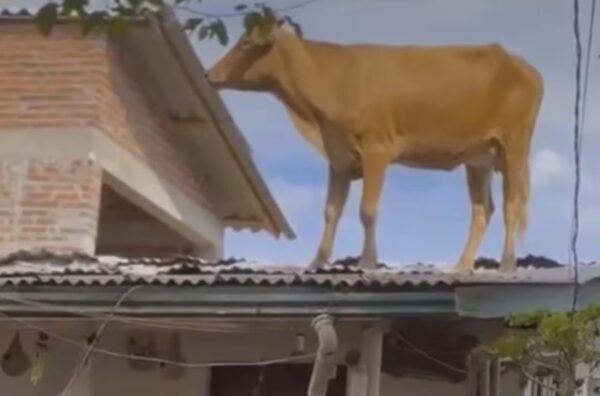 Uma vaca foi parar em cima do telhado de uma residência em Estrela, no Vale do Taquari, a 112 km de Porto Alegre. O caso aconteceu na quarta-feira (6), após a região ser afetada pela cheia do Rio Taquari, ocasionada pela passagem de um ciclone extratropical. De acordo com a prefeitura da cidade, o animal caiu após o telhado ceder, mas não se machucou.