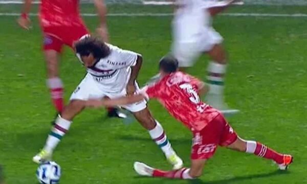 O árbitro da partida expulsou o jogador do Fluminense, que deixou o gramado do Estádio Diego Armando Maradona chorando diante do ocorrido.